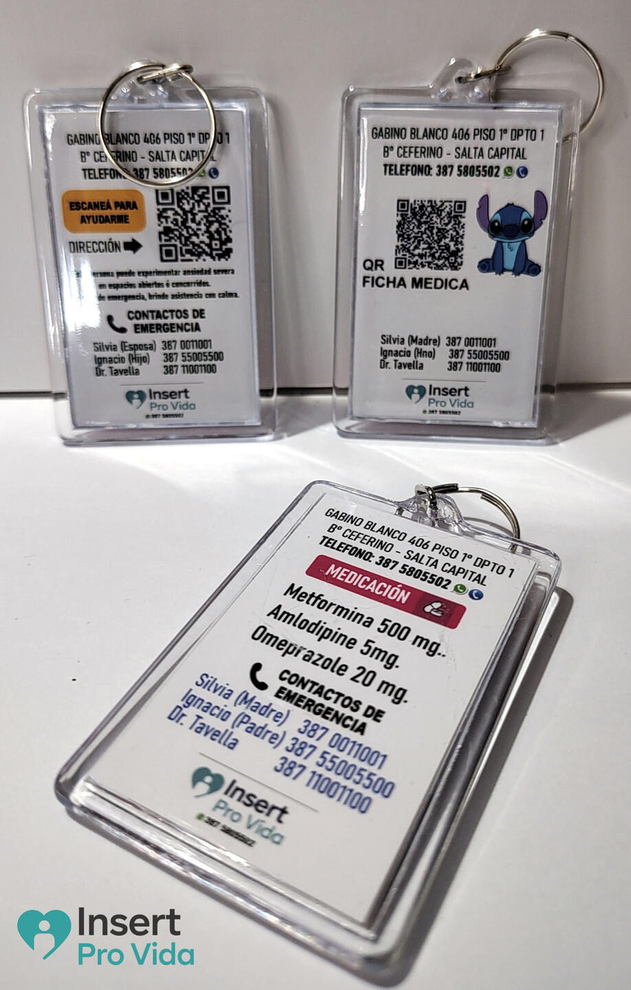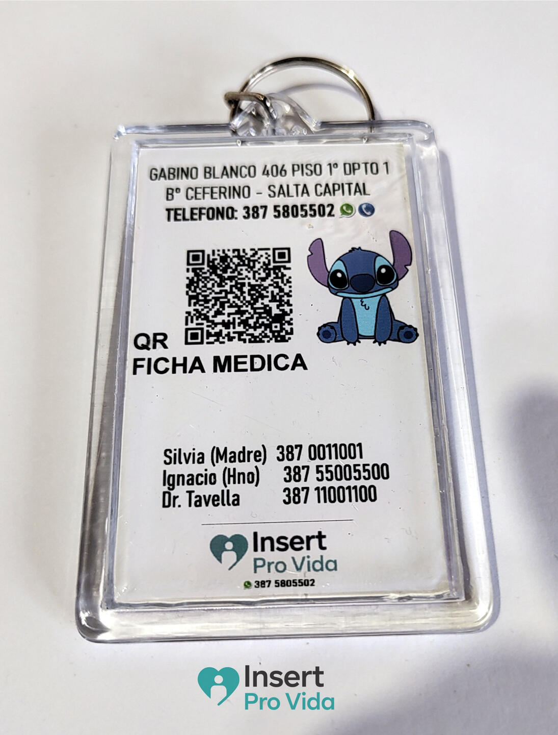 Porque en una situación crítica, cada segundo cuenta. Este llavero permite que cualquier persona —un docente, vecino, policía o transeúnte— pueda identificar rápidamente la condición del portador, escanear un código QR con su ficha médica digital y contactar a sus familiares.• Nombre y foto del portador