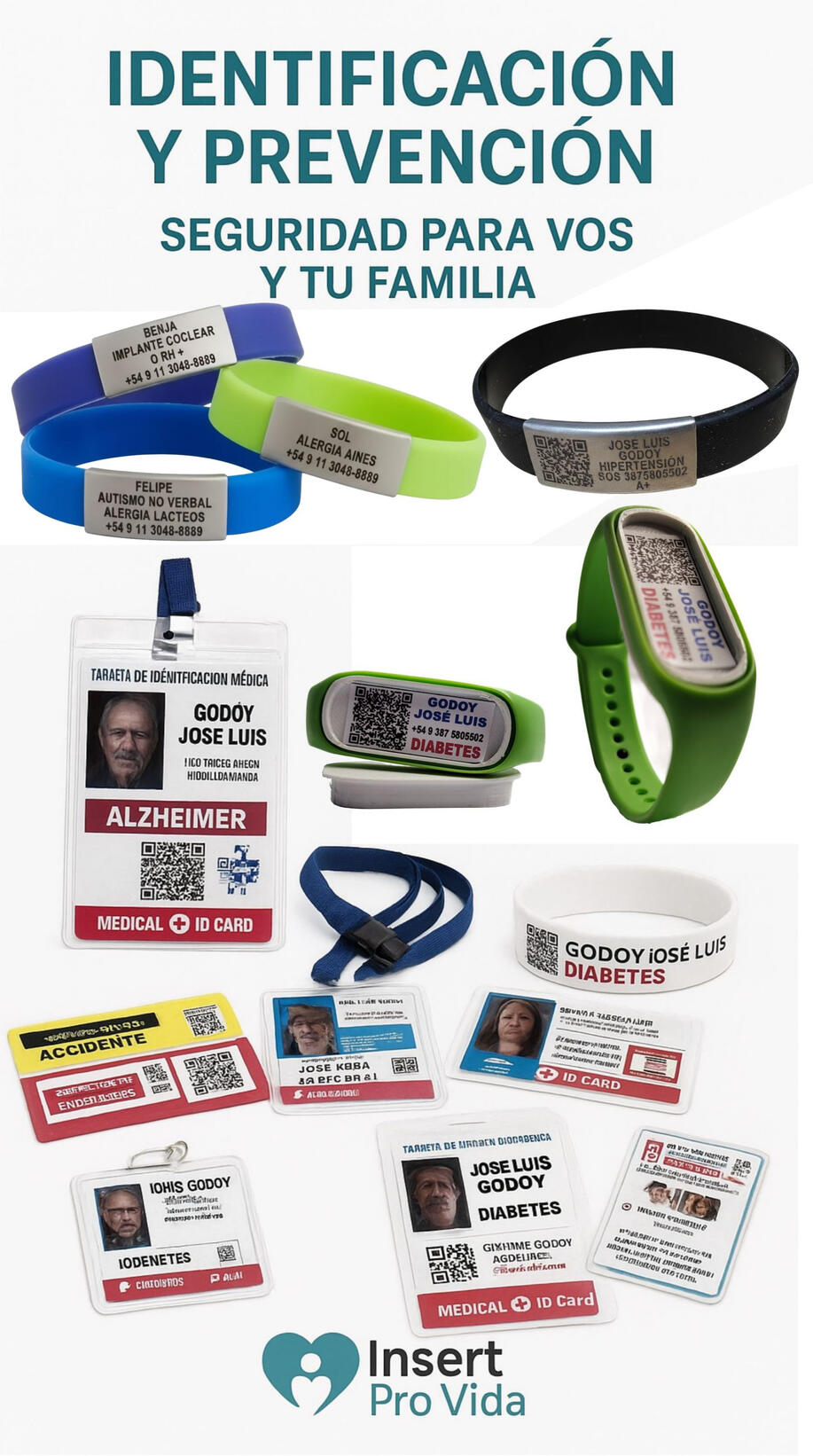 Identificación y Prevención.En Insert Pro Vida, creemos que un pequeño detalle puede marcar una gran diferencia.Nuestros IDs no son solo pulseras, tarjetas o llaveros: son tu voz cuando no podés hablar.En una emergencia, conectan a los socorristas con tu información vital, para que recibas la atención correcta en el momento más crítico.