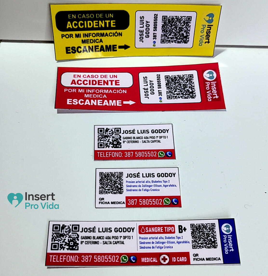 Son calcomanías de seguridad médica con información esencial del portador. Están diseñadas para ser pegadas en objetos personales o de uso cotidiano, permitiendo actuar rápidamente en caso de una emergencia, incluso si la persona no lleva una tarjeta o pulsera encima.¿Por qué tener uno?